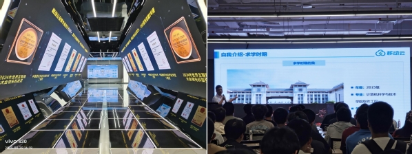 在崔爽老师的带领下,80位软件工程专业新生走进苏州中国移动云能力中心,开展了一场以“云见未来”为主题的企业实践认知活动。活动伊始,同学们在会议室聆听了两位校友的成长分享。一位校友以“主动求新创新,永立时代潮头”为主题,鼓励学弟学妹扎实打好理论基础,培养开拓精神;另一位则聚焦“在实践中锤炼本领,在竞赛中拓展视野”,分享了通过学科竞赛与项目实践提升综合能力的经验与心得。随后,在讲解员的引导下,同学们参观了移动云产业园,系统了解其规划设计理念与发展愿景。在政务云、交通云等主题展厅,通过丰富的行业案例展示与专业讲解,大家切身感受到云计算技术在各领域数字化转型中的核心价值与应用前景。穿过展示企业荣誉与专利成果的走廊,同学们步入核心科研成果展厅,近距离接触人工智能平台、算联网、轻量计算服务器等前沿技术成果。这些真实的科技场景,不仅拓宽了学生的专业视野,也让他们深刻认识到自身知识储备与行业需求之间的差距,进一步明确了未来的学习方向与成长路径。