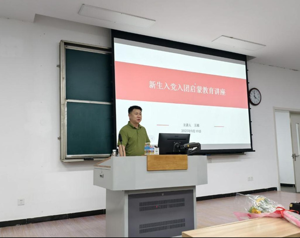 学院党委专职组织员王栋为全体新生作入党知识启蒙讲座,他系统回顾党的光辉历程,介绍学院党委架构,阐释党的“三大法宝”,并细致讲解入党流程与规范,引导新生筑牢信仰根基,积极向党组织靠拢。