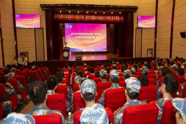 学院高度重视新生思想引领工作。开学伊始,学院党委书记陈国凤为全体新生讲授“开学第一课”,她生动介绍了苏州的城市魅力、苏州大学的办学底蕴以及学院在学科竞赛与产教融合方面的突出成果。她围绕“以初心使命锚定学习坐标”、“以通专融合夯实成长根基”、“以人机协同开拓认知边界”、“以开放合作链接广阔未来”四个方面,勉励同学们心怀家国、深耕专业,在民族复兴征程中书写无悔青春。