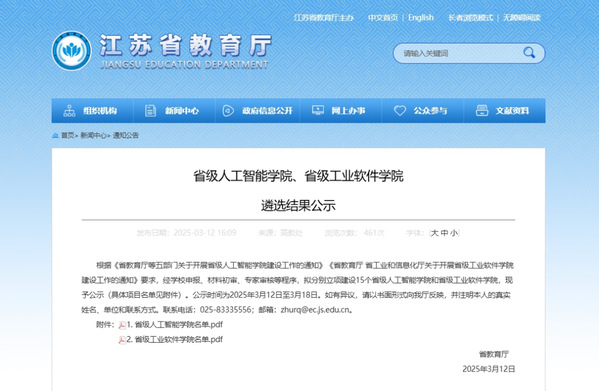 2025年3月12日,江苏省教育厅对省级人工智能学院、省级工业软件学院遴选结果进行了公示。苏州大学软件学院凭借雄厚的学科实力、卓越的产教融合成果以及前沿的科研创新能力,成功入选江苏省省级工业软件学院建设名单。