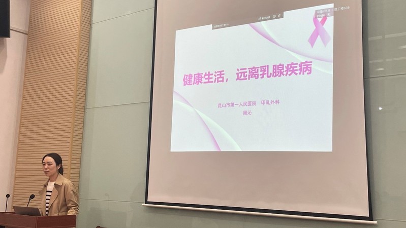 人间最美三月天,春花烂漫绽新颜。据统计,每年全球有数百万女性被诊断患有乳腺疾病,因此,对于女性来说,关注乳腺健康至关重要。为了提高我院女性教职工及学生的自我保健意识及疾病防治能力,普及预防乳腺疾病知识, 3月15日下午,我院特别邀请我校校友,昆山市第一人民医院甲乳外科周沁主任开展 “健康生活,远离乳腺疾病”的知识讲座。