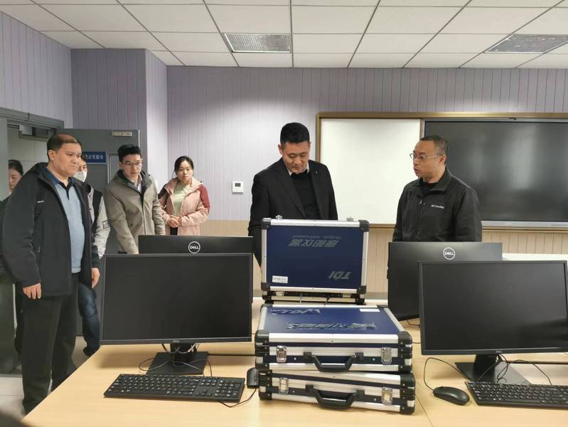 蔡成涛一行首先参观了学院实验教学中心、信创实验室和智能计算中心,了解了学院各类教学实验开展情况以及智能计算中心管理情况。