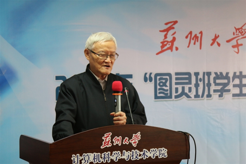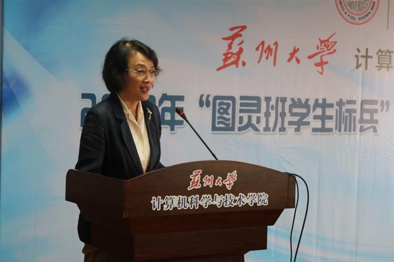 蒋星红致欢迎辞,向出席仪式的各位专家表示热烈欢迎,向成功入选首届图灵班的同学们表示诚挚的祝贺。她指出,作为我校深化人才培养模式改革、推进“卓越人才”教育工程建设有益尝试的“图灵班”,工作三年以来,在学生培养中做了许多有益的尝试。她进一步强调了高水平师资对学生培养过程的关键作用。并希望同学们牢记“图灵精神”和“卓越精神”,在学习和今后的发展过程中将图灵班的名字发扬光大。最后,她希望各位院士一如既往地关心和支持苏州大学的建设和发展,并对计算机学科的发展提出更多的宝贵意见和建议。