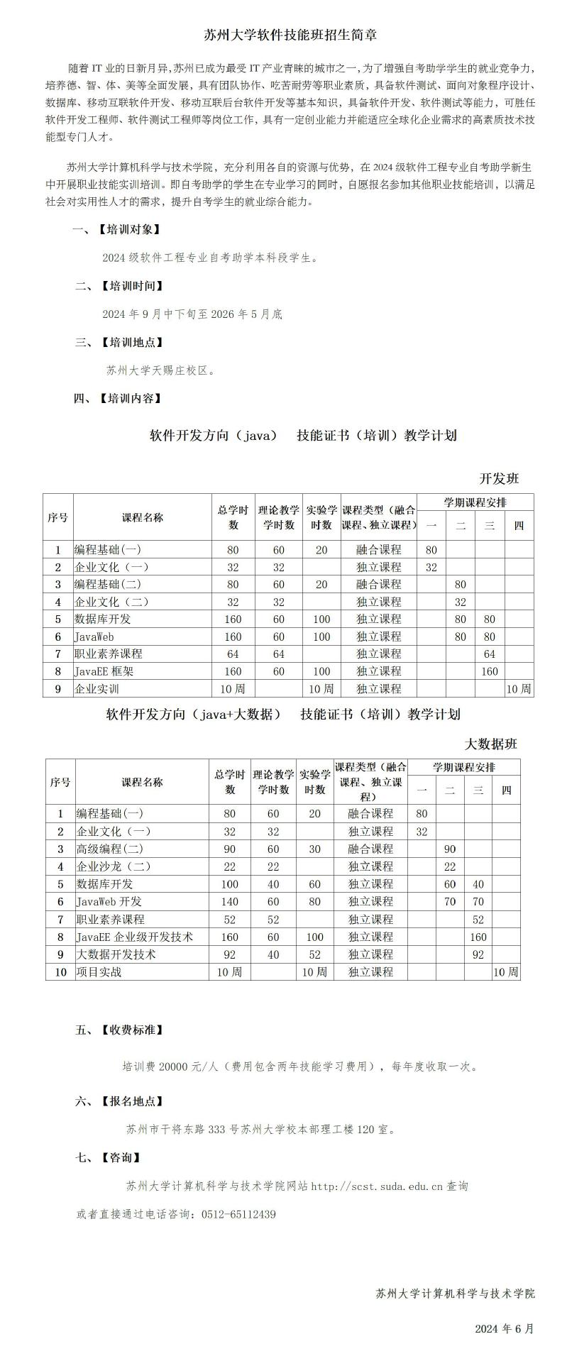 2024年度苏州大学软件技能班招生简章