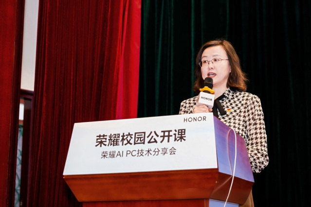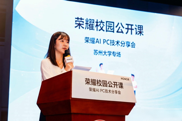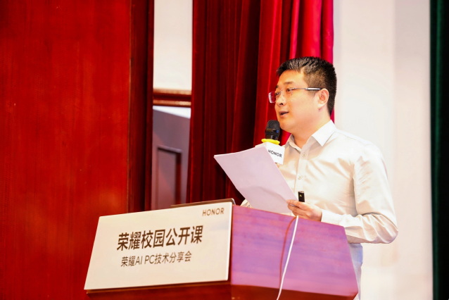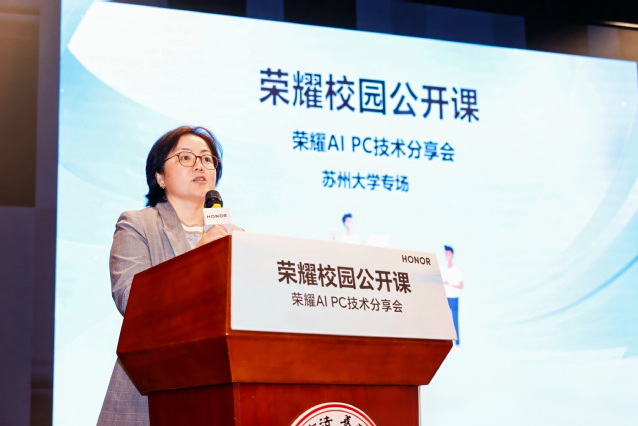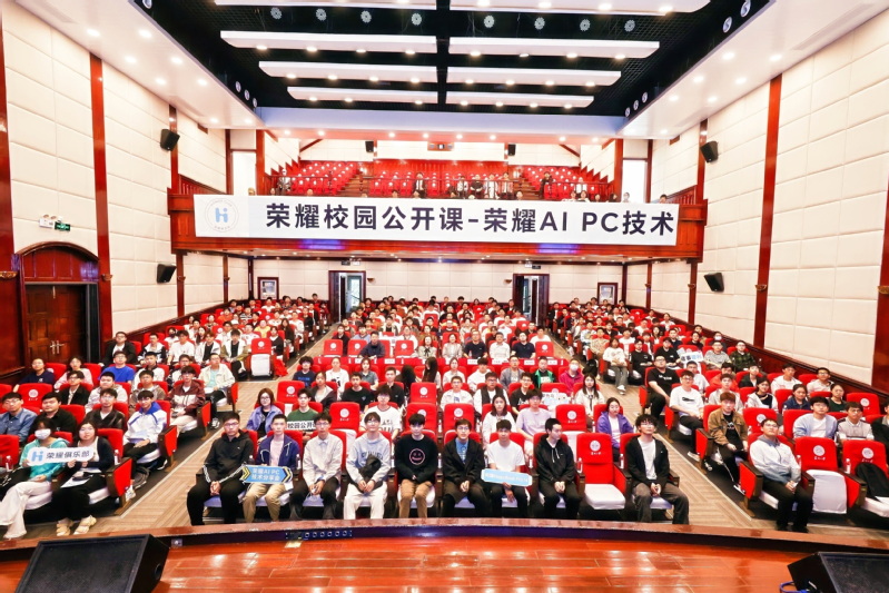 2025年4月9日下午,“荣耀科技领航AI前沿 青年担当共筑强国梦想”苏州大学“信仰公开课”校级示范课(素养公开课)在天赐庄校区敬贤堂顺利举行。荣耀终端股份有限公司苏州区域经理何亚明、荣耀终端股份有限公司荣耀PC AI架构师王延鹏作为主讲嘉宾。荣耀苏州销售经理高才珂,荣耀苏州体验店经理徐佳,计算机科学与技术学院党委副书记、副院长李恩秀,软件学院副院长俞莉莹,学院团委书记邝泉声,副书记徐超出席活动,2025年苏州大学“青年马克思主义者培养工程”春季班学员、计算机科学与技术学院“青年马克思主义者培养工程”学员和对活动感兴趣的各学院本科生、研究生合计320余人参与活动。活动由计算机科学与技术学院学生科协理事长程乐怡主持。