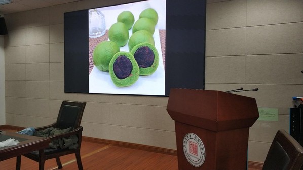 在活动开始之前,工作人员为大家播放了青团制作的视频教程,主持人还特别提醒同学们和面时加水的技巧。很多同学也拿起桌上的制作步骤认真学习起来,大家跃跃欲试,期待做出好看可口的青团。