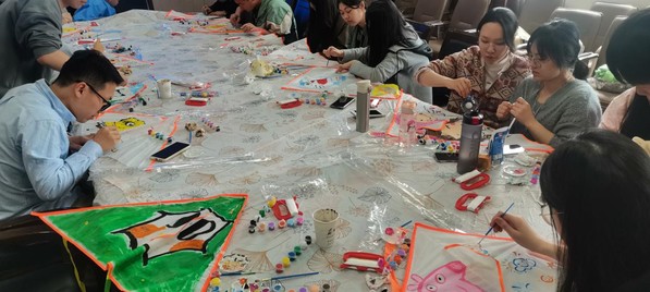 活动伊始,工作人员向参与活动的同学们讲解了绘制风筝的注意事项,大家迫不及待地拿起颜料和画笔绘制各类风筝图案,蘸颜料、调色、绘制,大家充分发挥想象力,一笔一画地用色彩点缀风筝,用双手和智慧为风筝增色添彩。