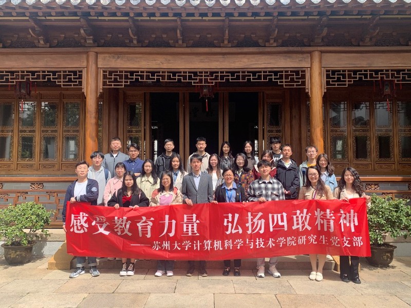 触摸姑苏教育千载文脉,促进中华民族文化繁荣。为弘扬“敢为、敢闯、敢干、敢首创”的“四敢”精神,鼓励支部党员在学习上持之以恒,在科研上迎难而上、攻坚克难,4月12日上午,在计算机科学与技术学院党委副书记、副院长李恩秀带领下,我院全体学生工作干部及研究生第四党支部党员来到了坐落在苏州古城区柴园内的苏州教育博物馆参观学习,开展主题党日活动。在欣赏苏州园林耐人寻味的美学意蕴的同时,领略苏州教育的千年魅力和当代风采,探寻教育发展历程中的红色印记。