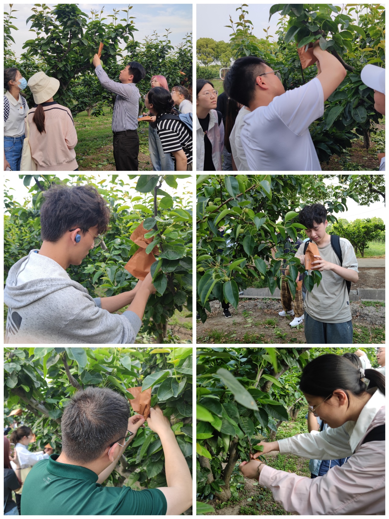 师生深入了解了太仓城厢镇电站村在乡村振兴和脱贫攻坚中所取得的成绩,并参观了电站村整体的发展情况,同学们深入田间地头,在农户的带领下对支撑发展的各类品种繁多的农作物和果林进行了解,对果树的生长规律、施肥耕种有了一定的认识,最后师生在农户的指导下开展劳作,在为翠冠梨树打果和套袋的工作中,体会了劳动的辛劳与幸福。
