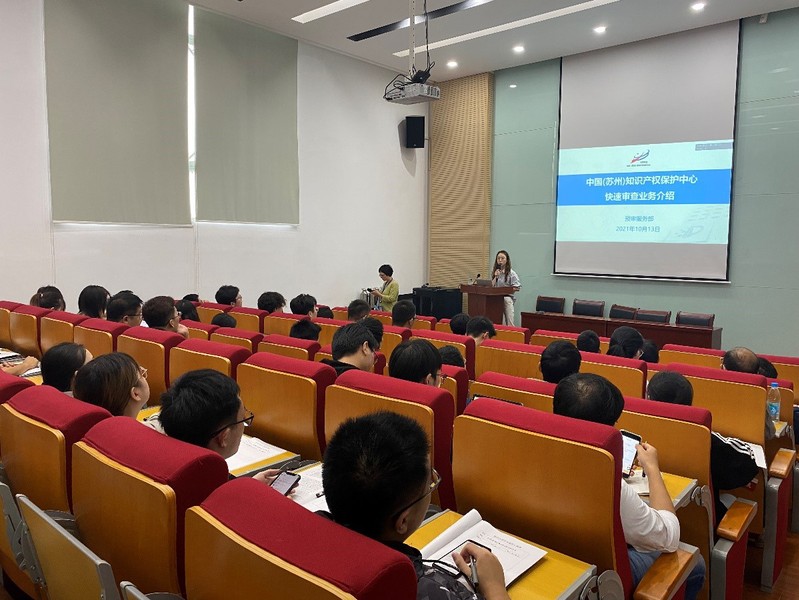 为加快推进国家知识产权试点高校建设工作,为广大师生开展专利撰写、专利布局提供更好、更专业的服务,2021年10月13日下午,校科学技术研究部科技成果转化处邀请了中国(苏州)知识产权保护中心骨干预审员高燕娃、 江苏中睿联禾知识产权服务有限公司专利分析部总监唐灵来到我院,为广大师生作高价值专利培育专场讲座,吸引了众多对专利申请和转移转化感兴趣的师生前来参会。本次讲座在苏州大学本部理工楼举行,由校知识产权管理科科长孙豪杰主持。