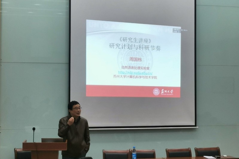 10月20日下午,计算机科学与技术学院研究生邀请NLP课题组组长周国栋教授开展了主题为“研究生科研能力培养”的学术讲座。本次讲座在苏州大学天赐庄校区理工楼635会议室举行,主要面向2021级研究生新生,目的是让同学们能够更好地了解研究计划,更快地进入研究生节奏。