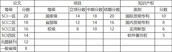 包括论文、项目、知识产权3类。具体的分数细则如下: