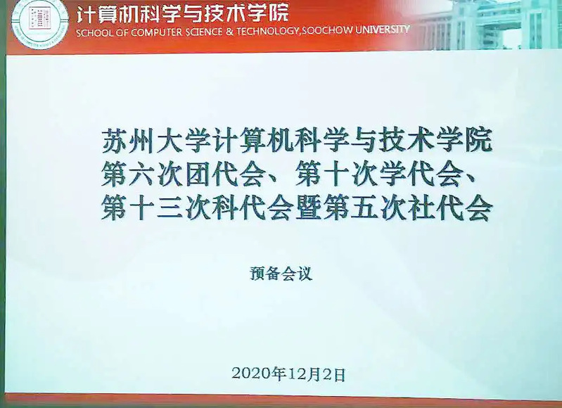 为了进一步贯彻习近平新时代青年思想,12月2日下午,苏州大学计算机科学与技术学院第六次团员代表大会,第十次学生代表大会,第十三次科技协会代表大会暨第五次社团联合会代表大会在理工楼召开。校团委严韵致副书记、学院党委杨礼富书记、院党委副书记、副院长沈云彩等校、院领导出席此次会议。会议审议通过了院团委、学生会、科协、社联工作的工作报告,肯定了团委、学生会、科协、社联一年来的工作成果,并投票选举产生第六届团委委员、第十届学生会委员、第十三届科协理事、第五届社团联合会委员、第十任学生会主席团。
