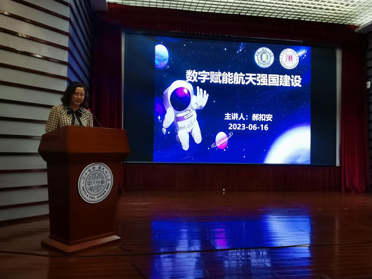 作为现代科技发展的重要领域之一,航天事业是各个国家以及人类文明发展的重要标志。随着数字技术的迅猛发展,航天业正迎来全新的机遇和挑战,宇航技术更是成为了各个国家竞争和战略布局的重要方向。为激发学生们传承航天精神、探索未知、敢于创新的热情,6月16日下午,苏州大学计算机科学与技术学院、软件学院邀请上海宇航系统工程研究所郝扣安博士、高级工程师为学生做题为《数字赋能航天强国建设》的学术报告,报告由软件学院副院长俞莉莹主持。