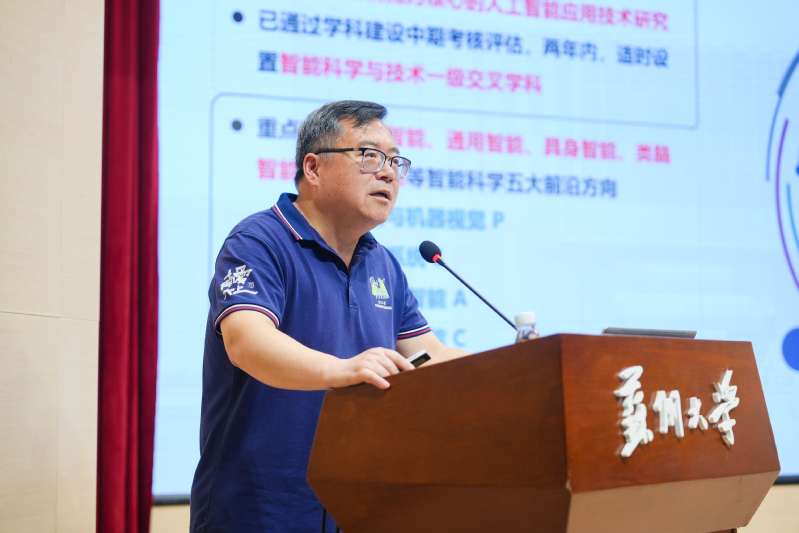 苏州大学党委常委、副校长姚建林出席开幕式并致辞。姚建林高度肯定了学院在科研立项、人才引进和学科建设等方面取得的突出成绩,尤其赞扬了学院在推进专业融合、提升人才培养质量方面的主动担当与卓越成效。他强调,面对国家“人工智能+”战略机遇,计算机学科应勇担使命、加强前瞻布局,持续推进有组织科研与学科交叉融合,为高水平科技自立自强输出“苏大智慧”。未来,他希望学院进一步发挥人工智能领域排头兵作用,明确目标、凝练特色、建强队伍,全面提升服务国家战略与区域发展的能力。