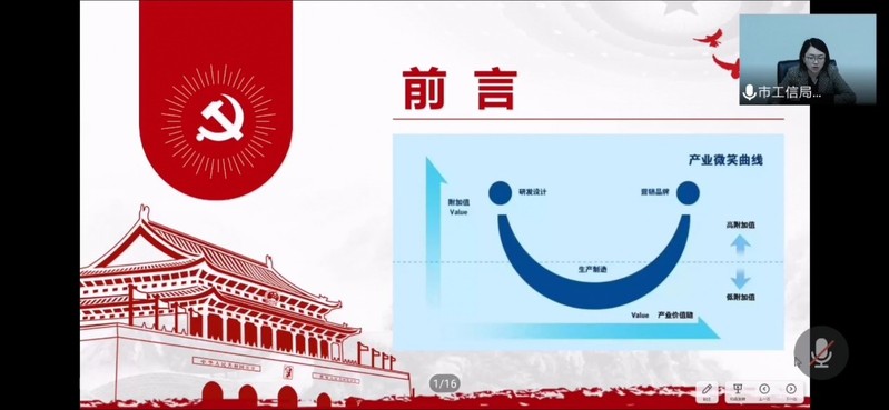 2021年12月10日下午,苏州大学形势与政策大讲堂暨苏州市百名局长“进思政课堂”百场宣讲活动在腾讯会议平台举行。这是苏州大学思政课实践教学改革的创新探索。苏州市工业和信息化局副局长惠艳烂以“铭记光辉历史 践行初心使命 推动产业链向‘微笑曲线’两端延伸”为题做形势政策课,计算机学院党委副书记沈云彩、新生辅导员仇馨玥、马克思主义学院院长助理、副教授孔川,2021级全体本科生在网络视频上聆听了讲座。讲座由由仇馨玥主持。