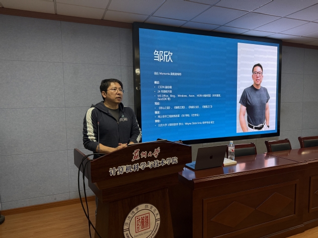 本次活动邀请Momenta研发负责人、前CSDN副总裁邹欣担任主讲嘉宾,学院院长助理、数智创中心主任、ACM-ICPC集训队总教练朱晓旭主持,得到了百余名低年级本科生的积极参与。
