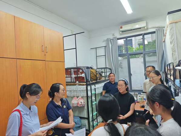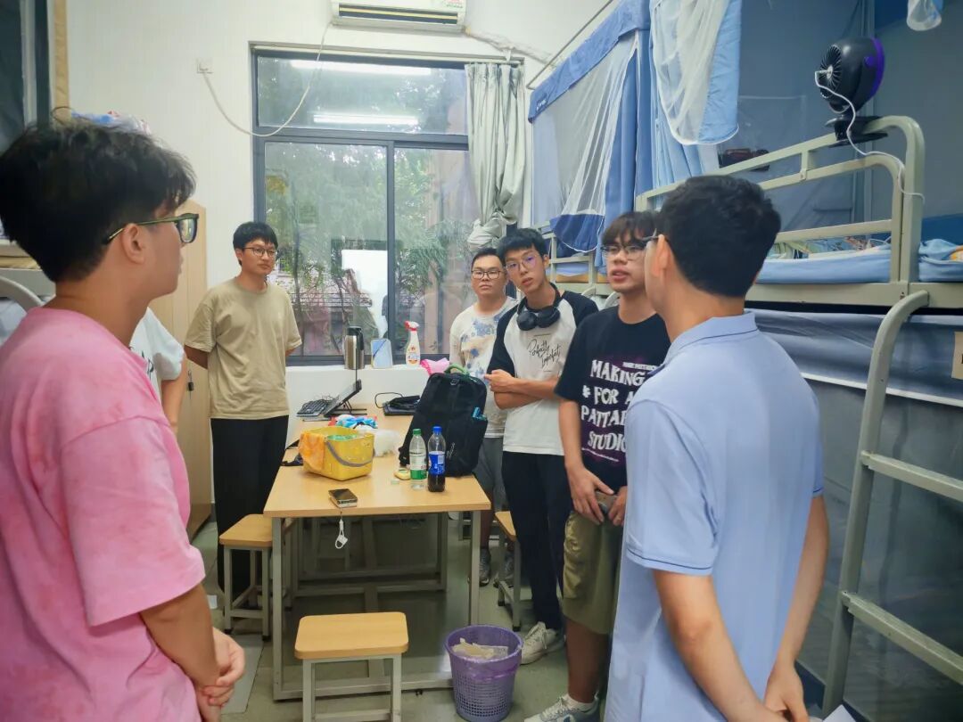 傍晚时分,辅导员、班主任以及学生助理走进一间间新生寝室,细致地查看大家的入住情况,耐心询问“床铺睡得习惯吗?”“空调温度合不合适?”,并一一解答着关于生活起居、课程安排的种种疑问。