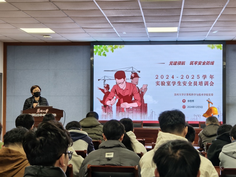 会上,李恩秀做了题为《党建引领,筑牢安全防线》的专题讲座。她详细介绍了学院建立党建工作与实验室学生安全工作联动机制,充分发挥党建在实验室安全管理中的引领作用,如何通过加强党的建设来筑牢实验室安全防线。她详细介绍了学校、学院安全工作的要求和制度,以及学院实验室学生安全员要履行的岗位职责,还结合具体案例,深入浅出地进行安全“四防”提醒,从防汛防雷、防火防爆、防身心伤害、防“坏人”等方面,加强安全教育,让党旗在各个实验室高高飘扬。