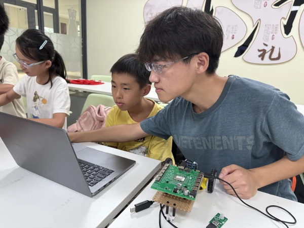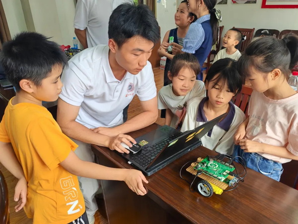 依托专业优势,团队创新教学形式:用红绳勾勒长征路线、在编程课堂中融入“八角楼油灯”等元素,让青少年在科技实践中汲取精神力量。并联合南京中医药大学开展社区服务,通过太阳能小车拼装等活动,将红色文化与科技教育延伸至基层,推动革命精神在新时代焕发新活力。