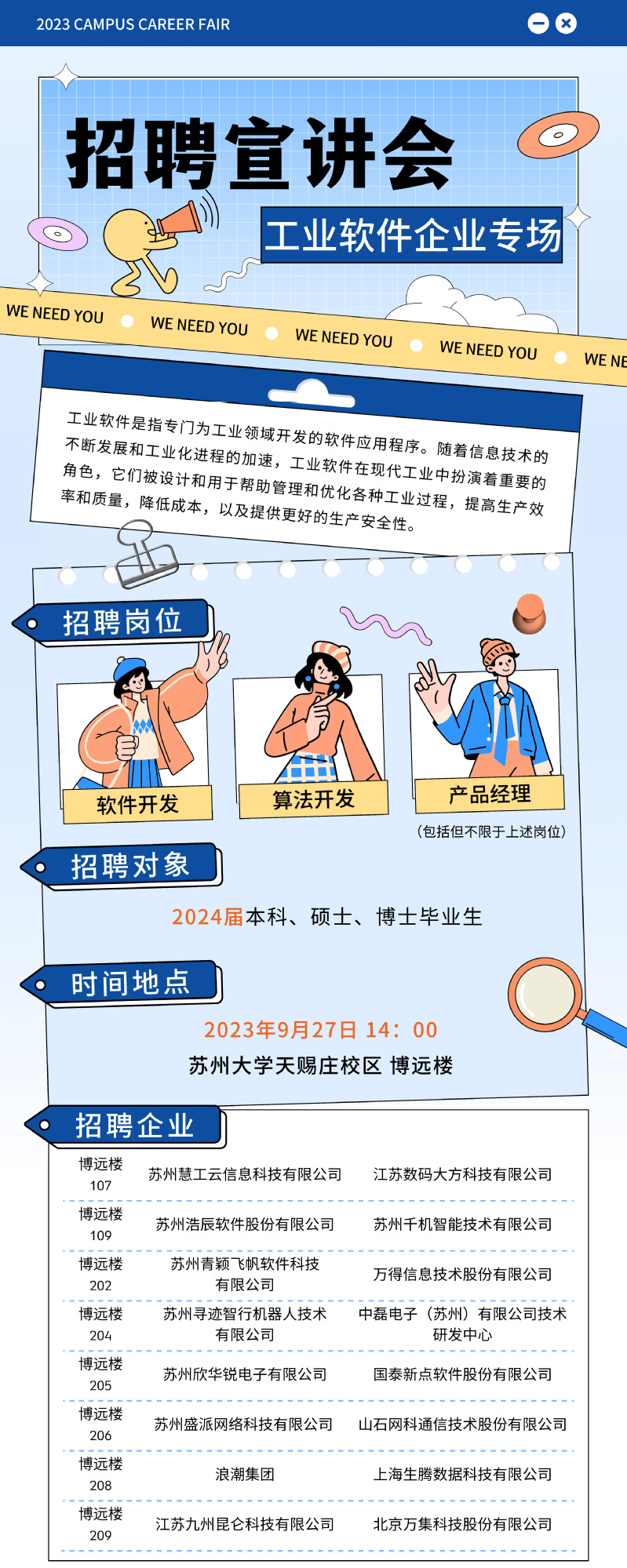 苏州大学计算机科学与技术学院、软件学院2024届毕业生工业软件专场招聘会