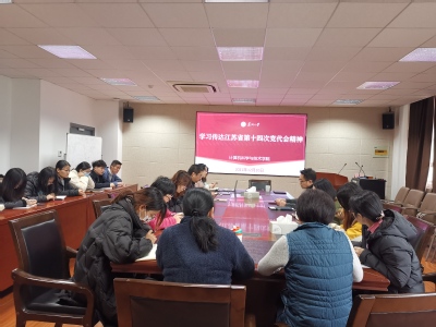 12月20日下午,学院组织全体行政人员在天赐庄校区理工楼211会议室听取党委书记杨礼富传达江苏省第十四次党代会精神。