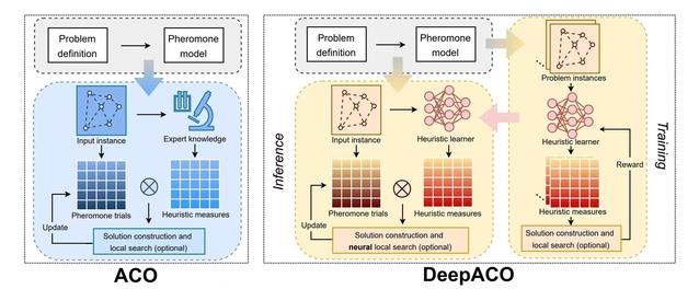 近日,我院本科生团队所著论文《DeepACO: Neural-enhanced Ant Systems for Combinatorial Optimization》被NeurIPS’2023接收。该论文第一作者叶皓然、第二作者王嘉睿皆为我院2020级人工智能专业本科生,来自新加坡管理大学的Zhiguang Cao助理教授和我院梁合兰副教授为共同通讯作者。NeurIPS是国际公认的人工智能和机器学习领域最具权威的两个世界顶级会议之一(另一个为ICML),其全称是神经信息处理系统大会(Conference on Neural Information Processing Systems),为CCF-A类会议。