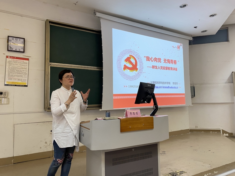 学院党委副书记、副院长李恩秀为新同学带来《我心向党无悔青春》入党启蒙教育专题讲座,向同学们介绍了党的基本知识、发展党员的工作流程和学生党建相关工作等内容,增强了同学们对党的认识,激发了强烈的入党意愿。