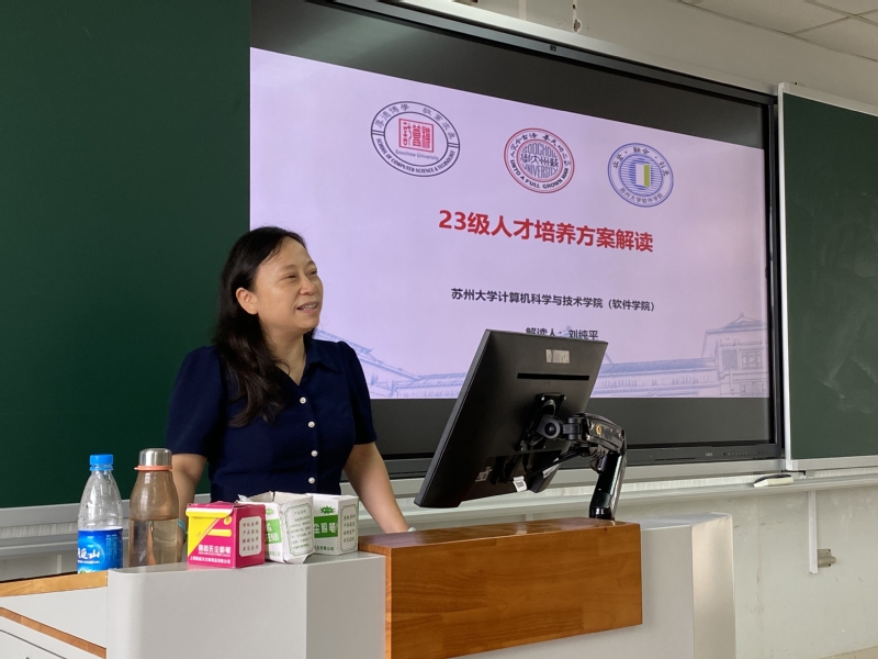 为了帮助新生更好地了解专业学习要求,学院副院长刘纯平教授对2023级本科生人才培养方案进行了全面解读。刘院长从方案设计、培养目标到课程设置等内容都进行了详细的阐释,她鼓励同学们在完成规定课程之余要积极参与实践,培养自己的创新能力,努力成为符合学院培养目标的拔尖创新人才。