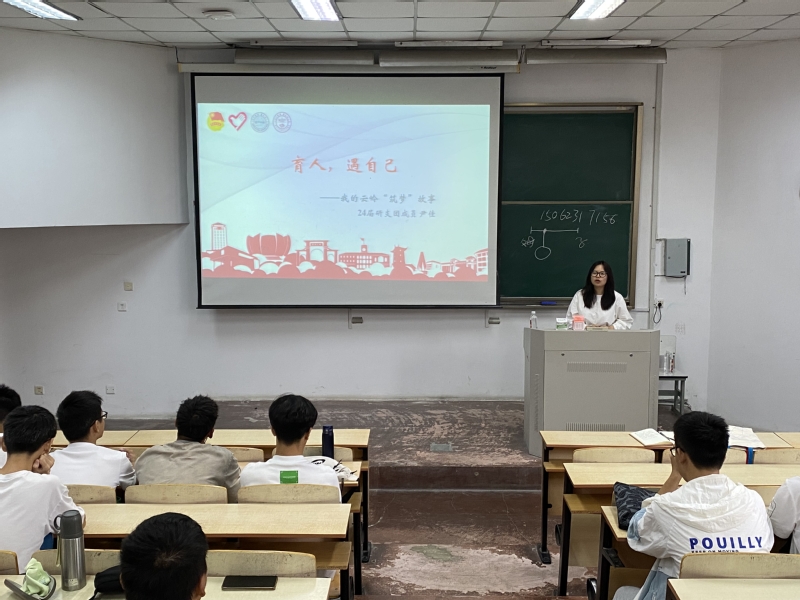学院专业教师晁平复副教授以《大学,成年人的第一站与第一战》为题,结合自己求学工作的成长经历,与同学们分享了自己对于成年和大学的理解。晁老师鼓励大家要充分把握大学的时光,在各类实践中挖掘自己的特长,找到自己的兴趣,更好地了解自己,做自己人生的掌舵人。