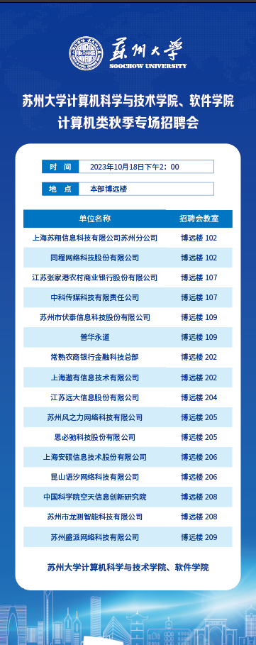 计算机科学与技术学院、软件学院2023年秋季计算机专场招聘会