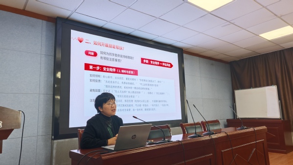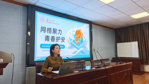 训练营聚焦“心理支持”与“安全护航”两大核心模块,邀请相关教师带来干货满满的实务课程。政治与公共管理学院学生工作办公室主任董筱文老师以《守护心家园,温暖苏大人——学生网格员心理支持实务培训》为题,结合大学生心理发展特点与常见心理困扰案例,从心理危机识别、沟通技巧运用、支持资源对接等方面展开讲解,通过情景模拟、案例分析等互动形式,帮助网格员掌握倾听共情、情绪疏导的实用方法,引导大家成为身边同学的“心灵守护者”。