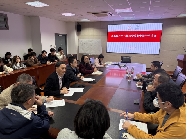 2025年11月5日,我院组织召开期中教学师生座谈会。本次会议旨在畅通师生交流渠道,精准对接教学需求,凝聚共识、汇聚合力,共同推动教学质量提质增效。院长黄河,副院长刘纯平,党委副书记、副院长高珊,计算机系主任钱龙华,软件工程系主任王宜怀,计算机系副主任朱晓旭,计算机系教工党支部书记孔芳,以及部分任课教师、班主任代表和全体辅导员参加会议。会议由高珊主持。