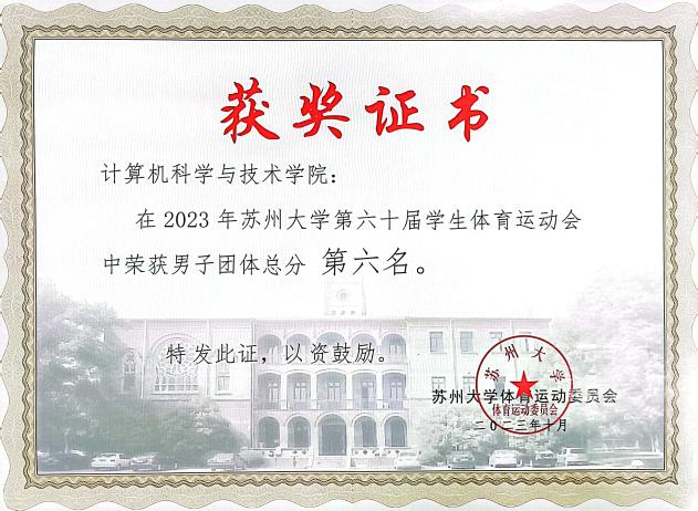 计算机科学与技术学院、软件学院学生参加苏州大学第六十届学生体育运动会成绩报告