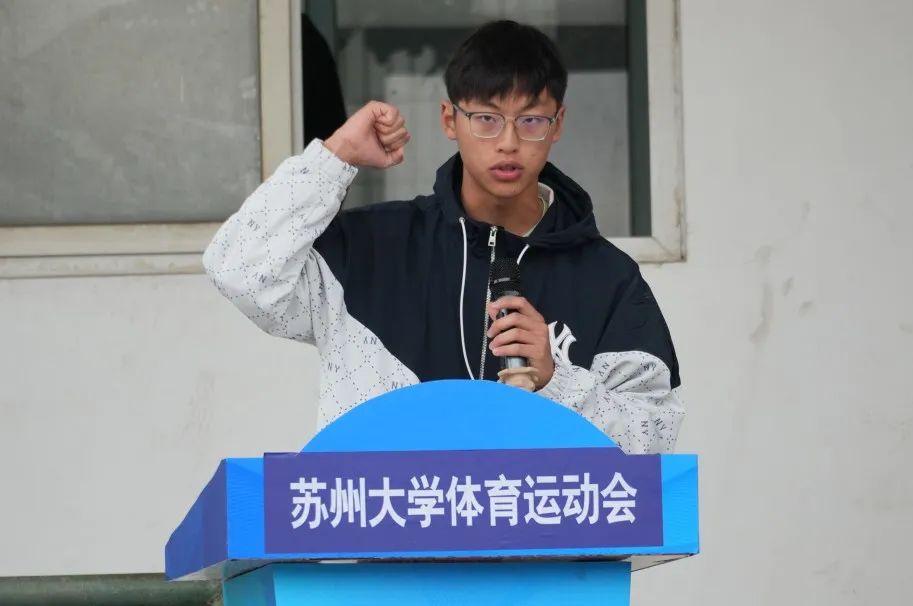 我院2023级新生沈杨卓凡作为运动员代表宣誓,将以积极饱满热情的态度参加本届运动会,弘扬奥林匹克精神,团结协作、勇于拼搏,赛出风格、赛出水平。裁判员代表、东吴学院缪澄老师宣誓,将遵守竞赛规程及规则,严肃、认真、公正、准确地完成本次裁判任务,确保本次运动会顺利举行。邓敏宣布本次运动会正式开幕,在热烈的掌声中,本届体育盛会拉开帷幕。