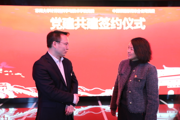 在党建共建签约仪式上,陈国凤介绍了学院的办学定位、党组织建设情况以及党建在引领学科发展、人才培养与社会服务等方面的实践成果。她指出,学院始终坚持“一融双高”发展理念,推动党建与业务深度融合,持续强化计算机学科在服务区域经济社会发展与国家战略需求中的支撑作用。她强调,此次共建是贯彻落实党的二十届四中全会关于“一体推进教育、科技、人才发展”“推动科技创新与产业创新深度融合”等重要部署的具体行动,标志着高校“创新链”与通信央企“产业链”在党建引领这一“红色引擎”驱动下实现同频共振。她表示,希望以此次党建联建为契机,进一步拓展与苏州联通在科研协同、人才培养、信创安全、数字化转型等领域的合作空间,共同构建“资源共享、优势互补、协同发展”的校企合作新机制,推动校企合作走深走实,为培育新质生产力、服务高质量发展注入强劲动能。