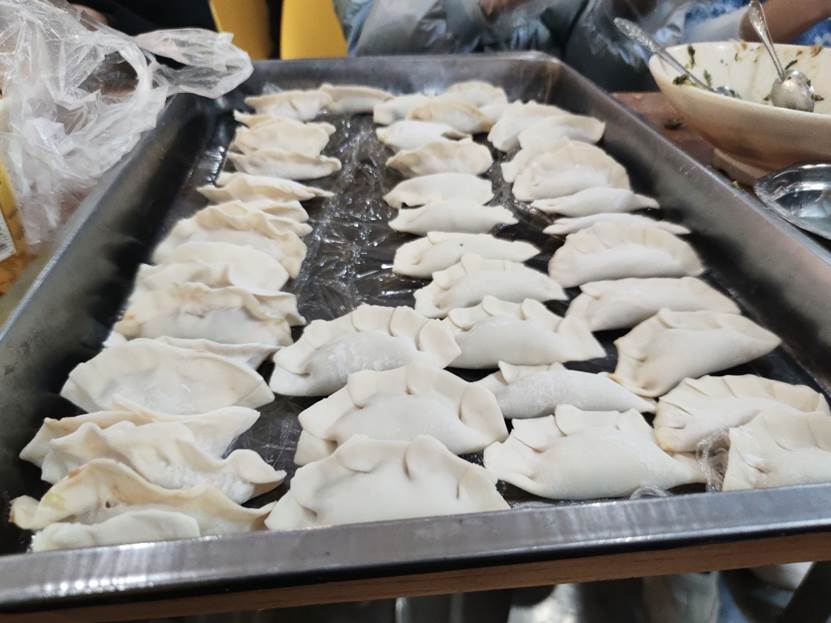 在进行了初步的分组之后,负责学生给每一个组分发了包饺子的材料,大家就动手开始做起来啦!分成各个小组的同学充分发挥自己的想象力和动手能力,包出了形状各异的饺子,有糖果形的,包子形的,甚至还有花朵形的……随后,新鲜出炉热气腾腾的饺子散发出诱人的香气。同学们互相品尝着自己一下午的劳动成果,分享了自己的家乡有关于冬至的故事,就在这欢声笑语中度过了整个下午。
