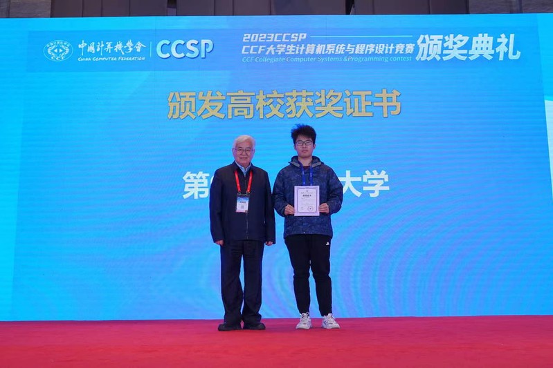 10月25-26日,2023 CCSP竞赛在沈阳师范大学进行。苏州大学精心组织和准备,派出了10位在CSP考试中取得高分的同学前往参加。经过12个小时的角逐,荣获了2个金奖、6个银奖和1个铜奖。并在高校团体排名中,荣获全国第9名。