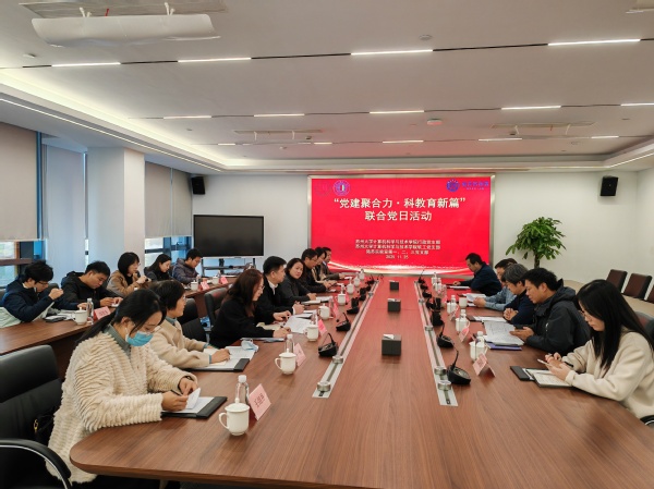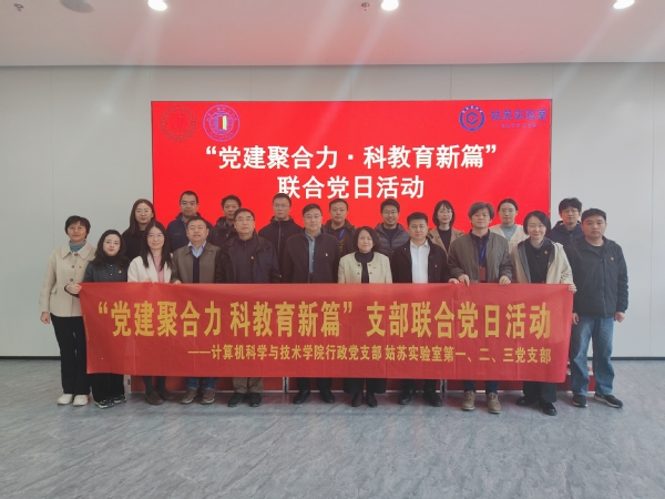 为深入贯彻党建引领高质量发展要求,扎实推进产教融合、科教融汇与党建业务双提升,11月25日上午,苏州大学计算机科学与技术学院行政党支部、软件工程系党支部与姑苏实验室第一、二、三党支部联合开展“党建聚合力・科教育新篇”主题党日活动。此前,双方已签署《党建共建协议书》,本次活动通过实地参观、座谈交流与业务对接相结合的方式,进一步推动合作事项具体化、共识成果实效化。学院党委书记陈国凤、副院长居民,行政党支部与软工系党支部全体党员;姑苏实验室党总支书记、综合管理部部长于年中,科技发展部副部长兼对外合作部副部长(主持工作)刘扬,以及姑苏实验室第一、二、三党支部部分党员与科研骨干共同参加活动。
