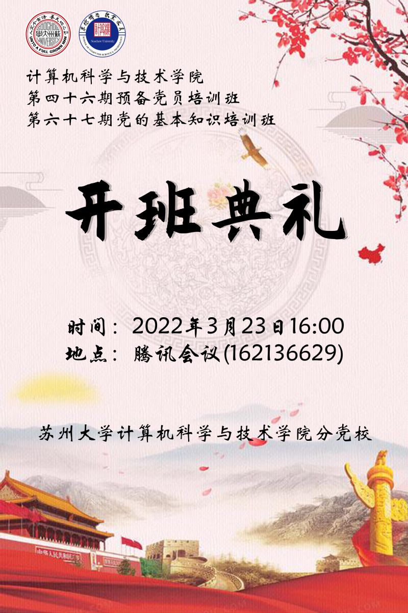 苏州大学计算机科学与技术学院第67期党的基本知识暨第46期预备党员培训班开班典礼