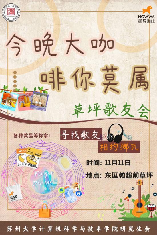 11月11日,苏州大学计算机科学与技术学院研究生草坪歌友会在东区教超前草坪举行。此次活动不仅促进了同学们之间的友谊,也为大家提供了一个放松心情、展示自我的平台。
