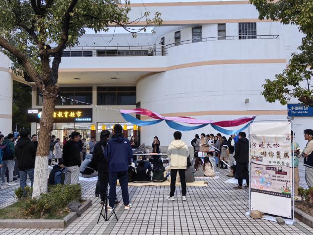 活动开始前,工作人员在线上征集同学们的音乐喜好敲定歌单曲目,并完成礼品与场地设施的采购与布置。临近傍晚,同学们齐聚在东区教超草坪,纷纷展示出自己的才艺。活动现场气氛热烈,欢声笑语不断。此次歌友会不仅有歌唱环节,还设置了互动环节,同学们在轻松愉快的氛围中相互了解、增进友谊。活动间歇,同学们享用温暖的咖啡与甜品,驱散傍晚的寒意。