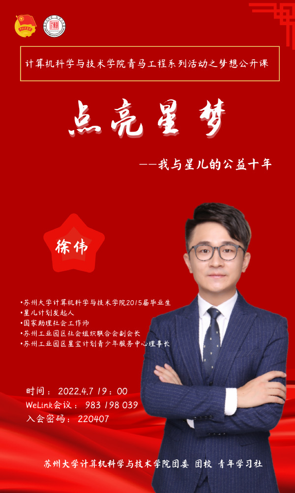 计算机科学与技术学院青马工程系列活动之梦想公开课——我与星儿的公益十年