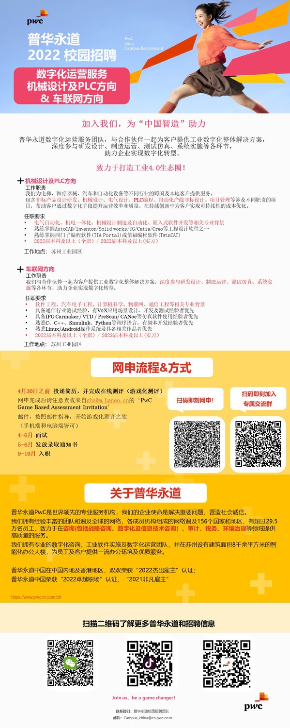 普华永道2022校园招聘