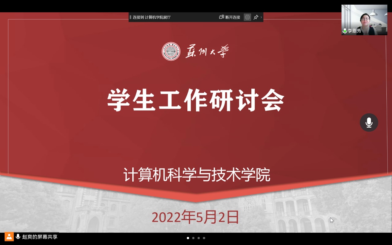 5月2日下午,为进一步加强辅导员队伍建设,调研疫情防控常态化背景下学生工作,充分发挥学工队伍的组织力、引导力、服务力,党委胡新华书记在我院理工楼214会议室调研学生工作,除住校的辅导员线下参会外,其余全体本科生、研究生辅导员线上参会。会议由学院党委副书记、副院长李恩秀主持。