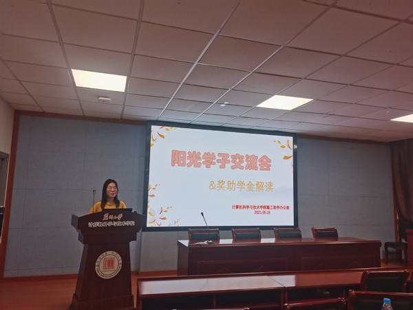 为进一步做好资助育人工作,2021年5月18日晚7点,苏州大学计算机科学与技术学院勤工助学办公室在本部理工楼504会议室召开了以“跃动青春,阳光逐梦”为主题的阳光学子交流会。全院所有家庭经济困难的同学都参加了本次会议。