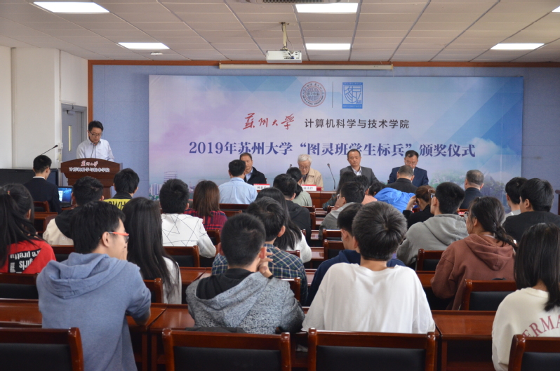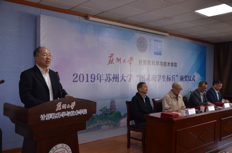 李凡长院长致欢迎辞,他向出席仪式的各位专家表示了热烈欢迎衷心的感谢,并对获评图灵班“学习标兵”的同学表达了诚挚的祝贺。李院长介绍了近四年来学院在培养“图灵班”学生方面做的创新性举措,也成功造就了一批优秀的苏大学子,并借此表达了对于图灵班学生的殷切期望。他鼓励图灵班同学以学习标兵、专家和学者为榜样,不畏艰苦,追求卓越,将图灵精神发扬光大。