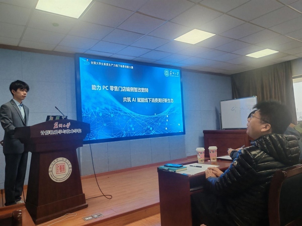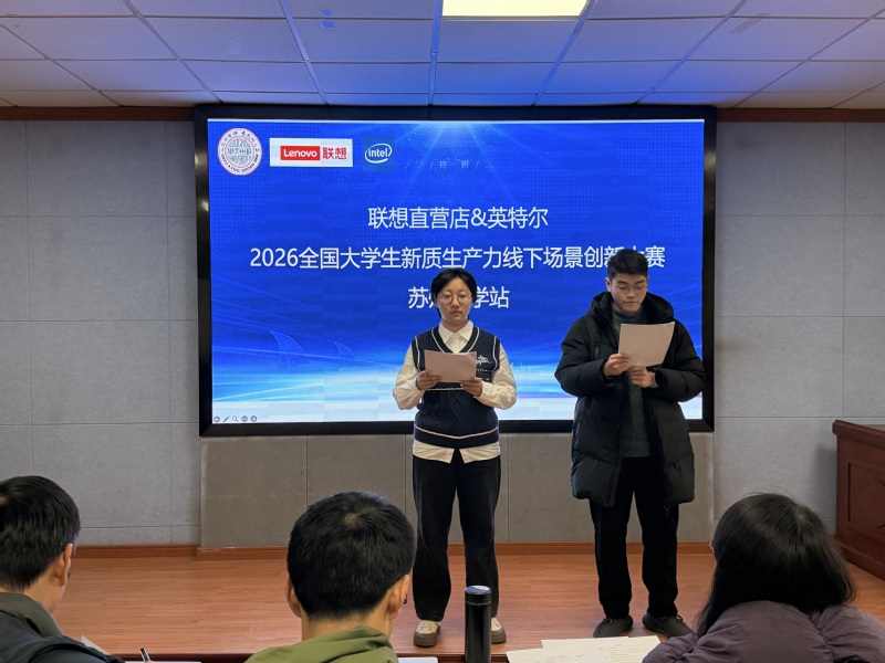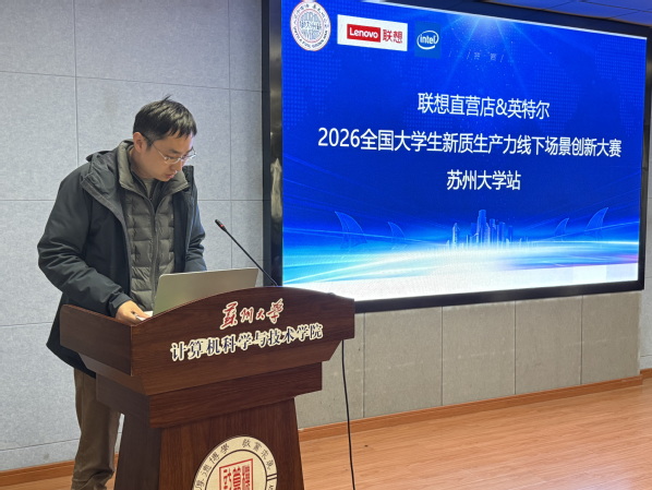 2026年3月4日下午,联想直营店&英特尔2026全国大学生新质生产力线下场景创新大赛苏州大学站决赛答辩会在理工楼504会议室顺利举行。本次大赛由苏州大学计算机科学与技术学院主办,学院团委、学生科协和研究生会共同承办,旨在激发青年学子以技术创新赋能实体经济,探索新质生产力在线下零售场景的落地应用。