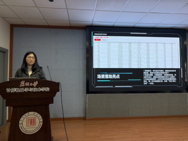 本次决赛答辩邀请计算机科学与技术学院党委副书记、副院长高珊,副院长周经亚、贾俊铖,院数智创中心姚望舒,院学工办主任邝泉声担任评委,从技术落地性、创新价值、数据支撑等维度对项目进行严格评审。
