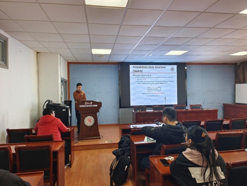 张瀚文聚焦于高性能网络流测量中的多流基数同时估计难题。针对现代交换机内存有限、任务多样的挑战,他详细阐述了提出的MIME框架。该框架融合片上SRAM与片外DRAM的优势,通过分区布隆过滤器与多维哈希超立方体结构,实现了对多维度流特征的无偏、低误差估计。MIME在相同存储开销下,平均相对误差优于当前主流方法,为网络安全检测、负载均衡等应用提供了有力支持。